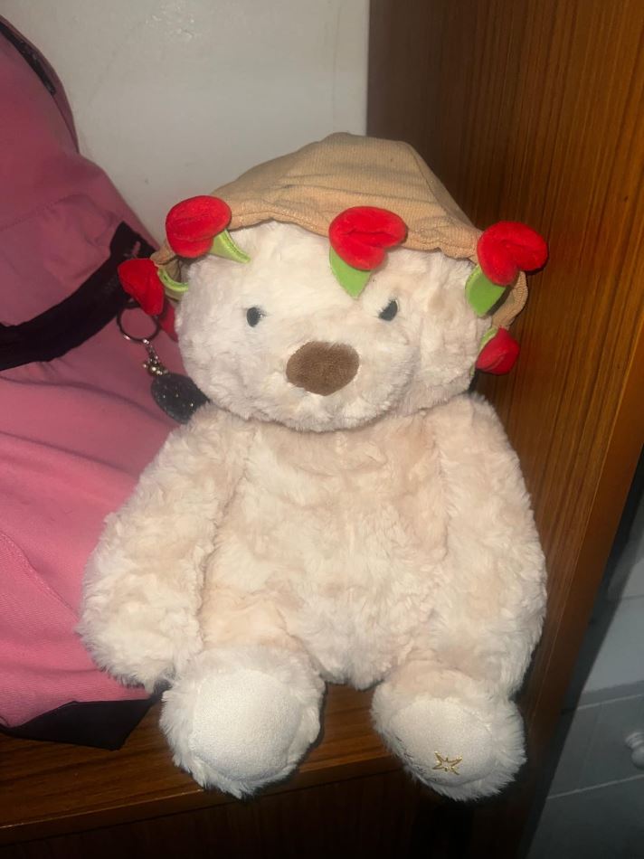 Tak, każdy miś otrzymuje różę z materiału, stanowi czapkę, zaprojektowaną tak, aby pasowała do magnetycznych łapek.
